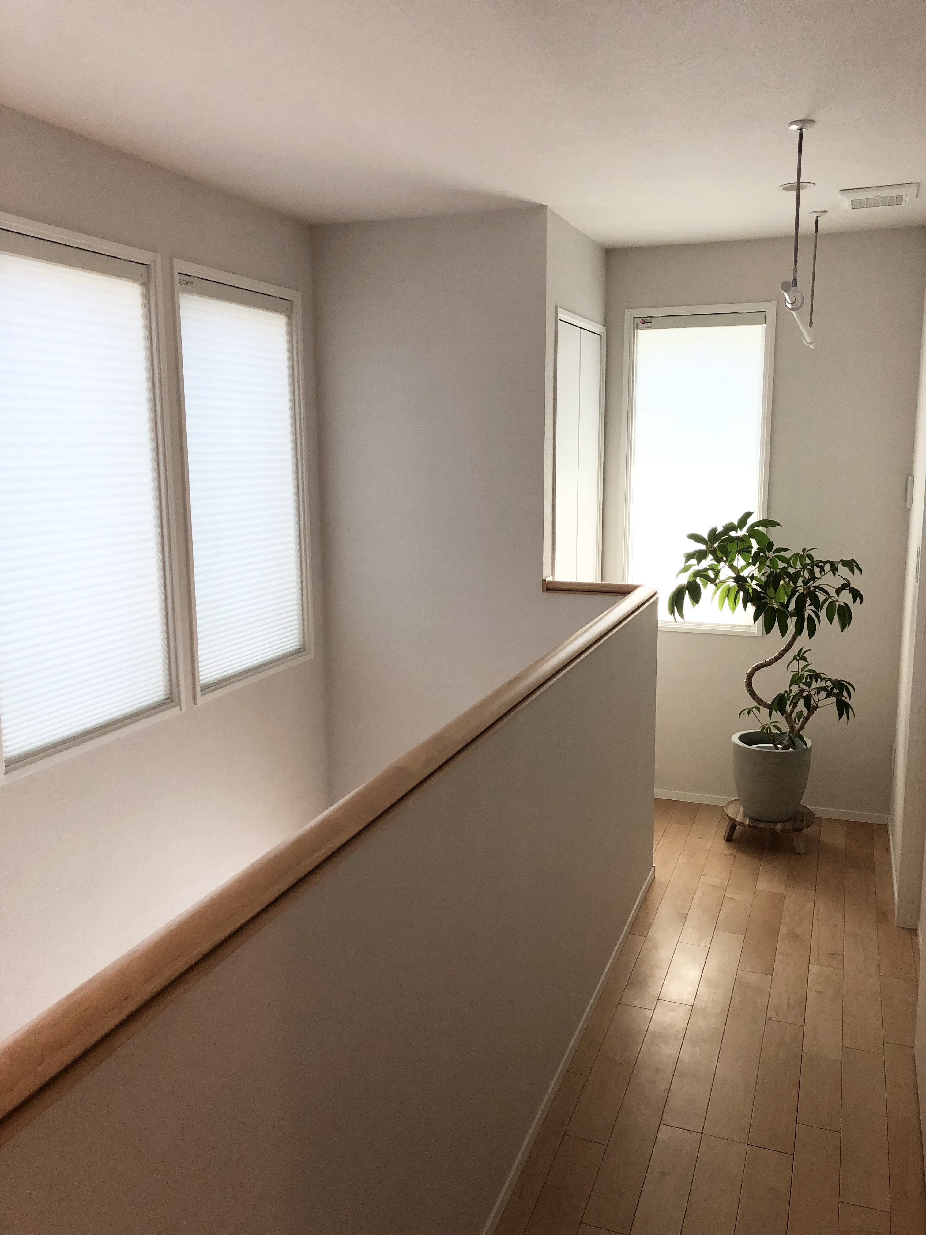 わたしのうちではLDKの窓と吹き抜けの窓、寝室や子供部屋の窓にあるハニカムシェードは全て電動にしました。